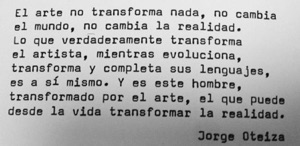 “El arte tiene que estar en el hombre” “El arte no es para los museos es para el hombre” “El arte está dentro del Hombre”. Es la creación de uno mismo. Pinchando en la imagen inferior. Podéis ver el video del cabreo de Oteiza en la Bienal de Venecia de 1988.