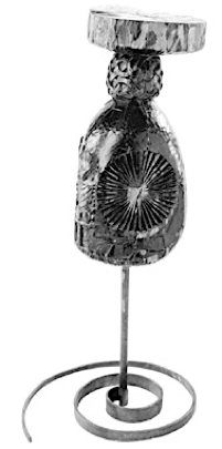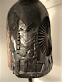 En el nudo tres serpientes se entrelazan simbolizando la sabiduría. En el centro un disco solar enmarcando por varias esculturas (“Usi Robot”). En la parte posterior yo tocado por el fuego de la luz en acción de gracias, a mi lado mi moto que representa el movimiento material y al otro la huella de mi mano saliendo del fuego «unión mística» con la energía del rayo.