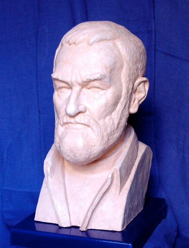 Hice el retrato en 1999. Gres cocido a 800º. Como todas mis esculturas están primero modeladas en barro, después cocidas en el horno y luego pasadas a bronce.